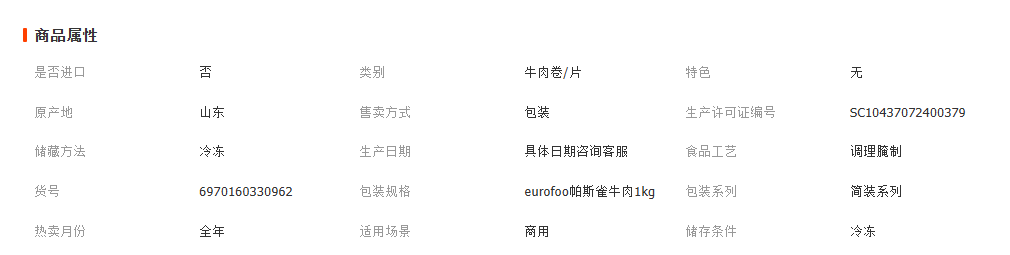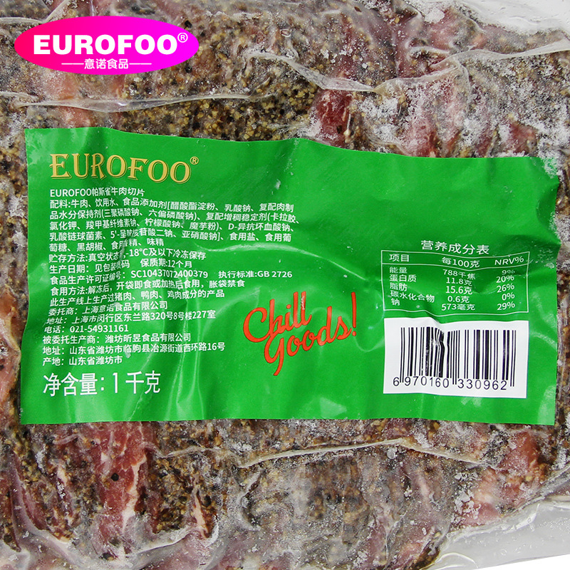 尤乐傅帕斯雀牛肉切片1kg原切牛肉黑椒味即食汉堡三明治餐饮商用