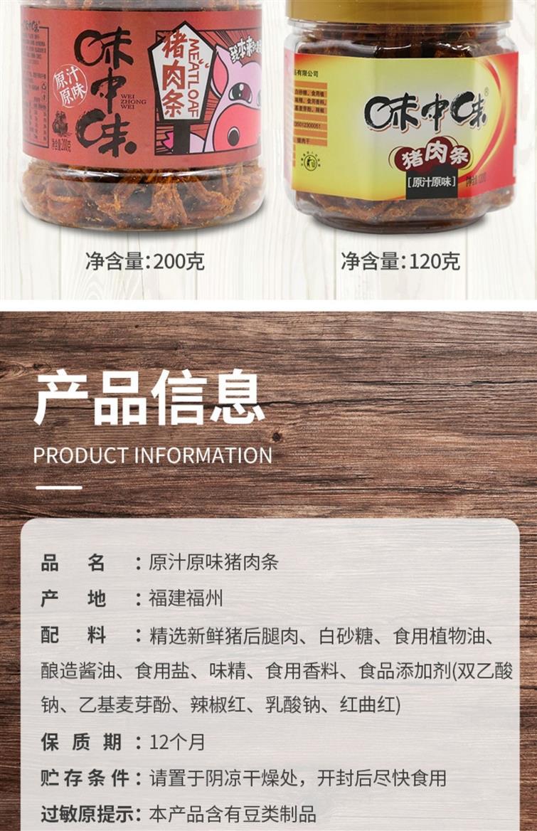 福建特产味中味原味猪肉干猪肉脯即食手撕猪肉条罐装办公休闲零食