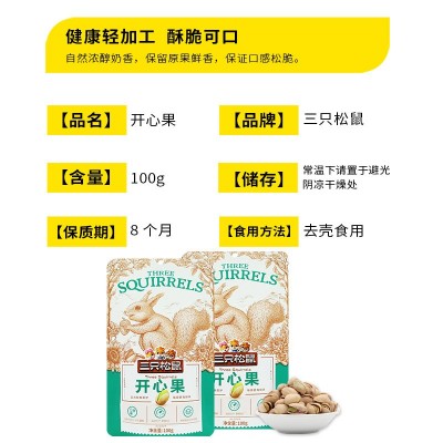 一件代发三只松鼠开心果100g/袋原色无漂白坚果休闲零食干果包邮